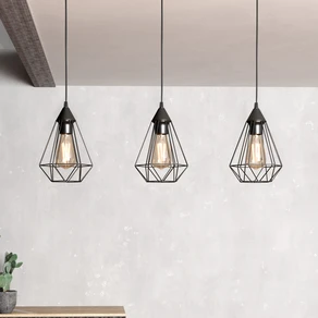 Za kuhinje industrijskog izgleda idealni su sirovi materijali poput patiniranog metala, žičane mreže ili grubog stakla. Otvorene žarulje s vidljivim svjetlilom, tamnim bojama i jasnim oblicima izgledaju autentično. Ovdje lampa namjerno postaje središnja točka dizajna.