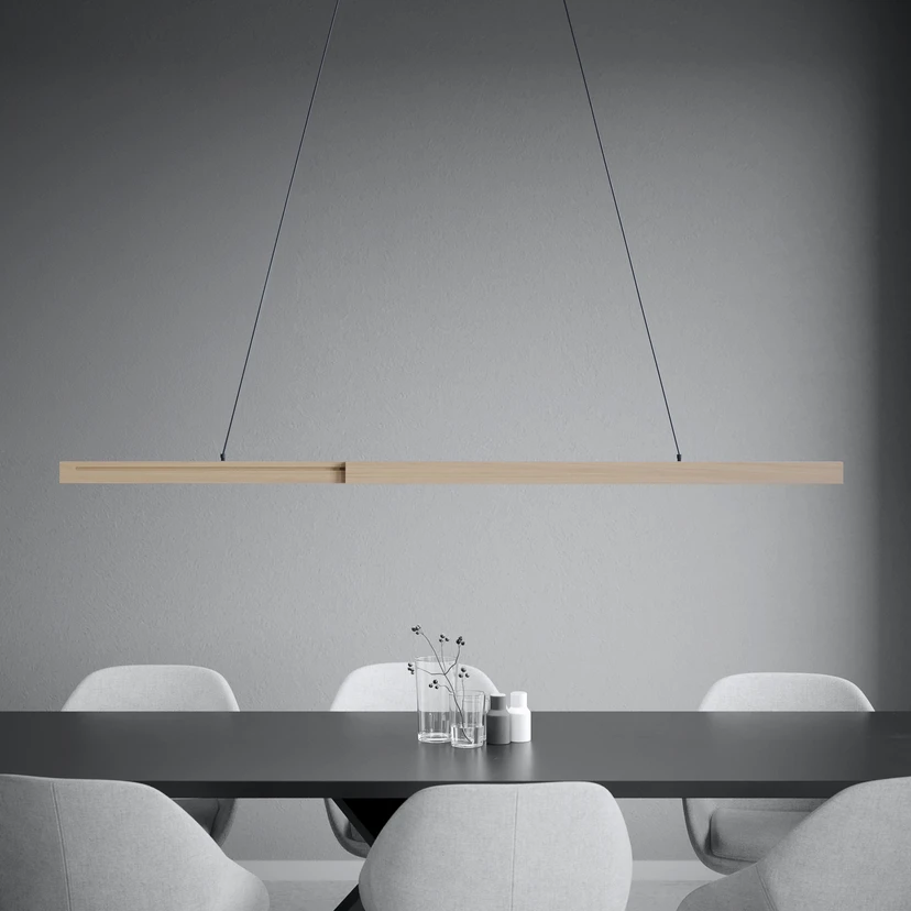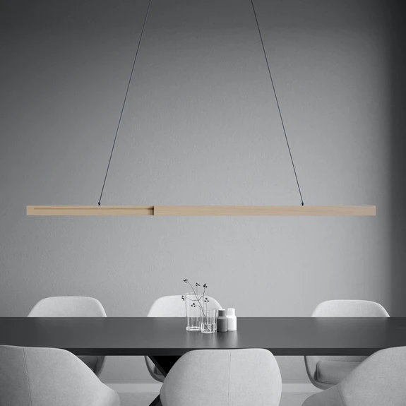LED viseća lampa Stars of Light Montebuono kombinira moderan dizajn s prirodnim detaljima. Skladna kombinacija aluminija, plastike i završne obrade u drvenom izgledu stvara bezvremensku estetiku koja se besprijekorno uklapa u dnevne boravke, blagovaonice ili kuhinje. Sa svojim integriranim LED izvorom svjetlosti, lampa nudi izdržljivo i energetski učinkovito rješenje za osvjetljenje koje stvara ugodnu atmosferu zahvaljujući toploj bijeloj boji svjetlosti (3000 K).
