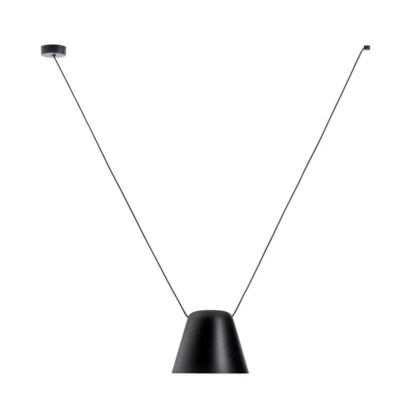 Viseća svjetiljka Attic je svestrana, jednostavna i skladna. Njegovo aluminijsko sjenilo dizajnirano je kao krnji stožac okrenut prema dolje i izravno emitira svjetlost. Crni ovjes sastoji se od nadstrešnice, kabela provučenog kroz sjenilo i drugog stropnog dodatka. Odabirom razmaka između nadstrešnice i drugog stropnog dodatka može se odrediti visina ovjesa sjenila kako bi se pronašao idealan položaj između stropa i npr. stola.