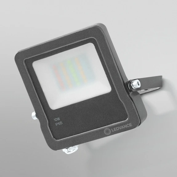 Zahvaljujući RGBW LED diodama, zidni reflektor Flood proizvodi, ovisno o okolnostima, ravno toplo bijelo osvjetljenje za orijentaciju na otvorenom; alternativno, obavija okolinu šarenim svjetlom u željenoj boji. Vizualno, vanjska zidna svjetiljka je apsolutno neutralna sa svojim tamno sivim aluminijskim kućištem i strukturiranim staklenim pokrovom. Zahvaljujući LEDVANCE SMART+ WiFi tehnologiji, Flood se može spojiti na pametni telefon/tablet putem WLAN-a i upravljati putem aplikacije ili glasovne naredbe. Montažni nosač omogućuje fleksibilno poravnanje (raspon rotacije do 180°).