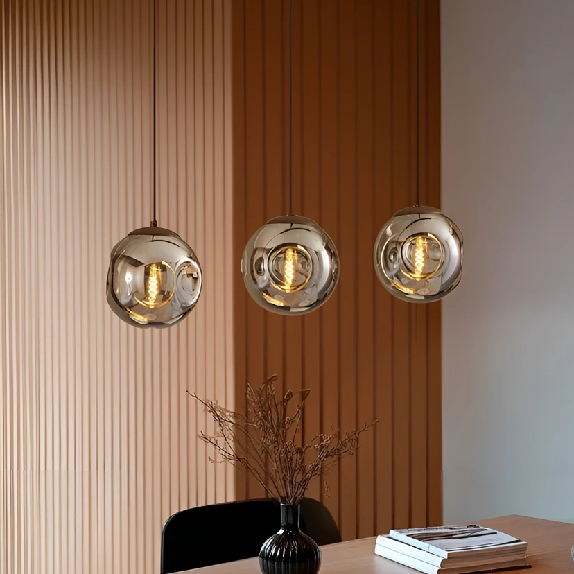 Viseća lampa Valentina s tri žarulje izduženog oblika sa staklenim sjenilima