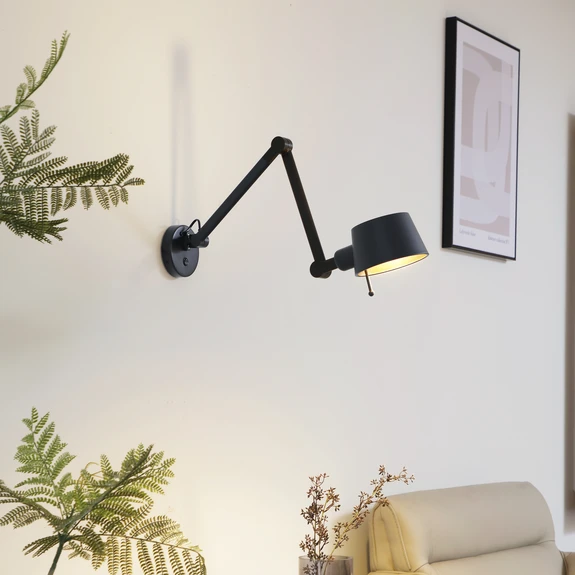 Zahvaljujući elegantnoj kombinaciji crne i zlatne boje, zidna svjetiljka Silka moderan je vrhunac svake prostorije. Bilo u radnoj sobi, dnevnoj sobi ili spavaćoj sobi - podesiva svjetiljka pruža ugodno osvjetljenje i može se individualno prilagoditi. Prigušivač nije uključen, ali se svjetlina može regulirati putem vanjskog prigušivača ako koristite žarulju s mogućnošću prigušivanja.