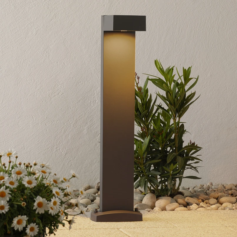 Njegov minimalistički, uglati dizajn čini ovu svjetiljku za put posebnim vrhuncem. Svjetlo usmjereno prema dolje svijetli toplo bijelo i ne samo da osvjetljava okolinu, već stvara i skladne efekte u podnožju svjetiljke. Zbog toga je Quadrasyl pogodan za sva vanjska područja (IP44), bilo u vrtu, na prilazima ili stazama na imanju. Set betonskih sidara za pričvršćivanje na tlo uključen je u opseg isporuke.