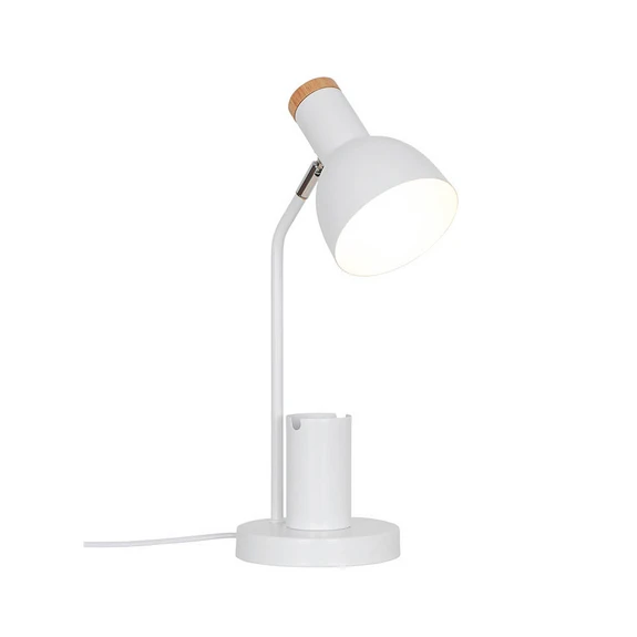 Stolna lampa Devone u bijeloj boji s drvenim elementom na glavi