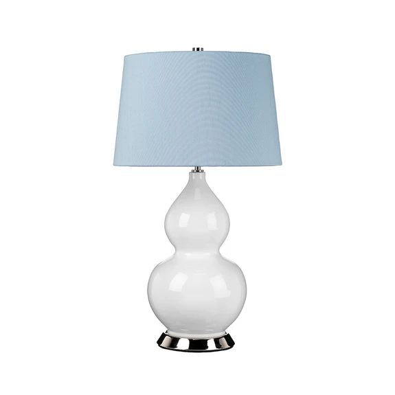 Ova lijepa stolna lampa privlači pažnju i kada nije upaljena. Kišobran Isla izrađen je od tkanine i nalazi se na gomoljastom okviru od bijele keramike. Čelična baza s finišom od poliranog nikla dovršava uspješan izgled.