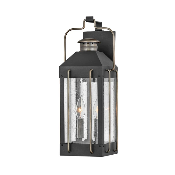 Vanjska zidna svjetiljka Fitzgerald učinkovit je izvor svjetla, kao i dekorativan, industrijski dizajniran komad nakita za vanjsku upotrebu. Okvir je izrađen od aluminija s crnom završnom obradom i ukrašen je podupiračima u boji mesinga koji štite staklo. Ugrađuje se grlo E27 u koje je najbolje umetnuti žarulju sa žarnom niti s odgovarajućim postoljem. Žarulje nisu uključene - mogu se naručiti zasebno putem dodatne opreme.