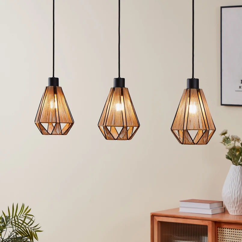 Viseće svjetlo Adwickle, tri sjenila od prirodne pređe