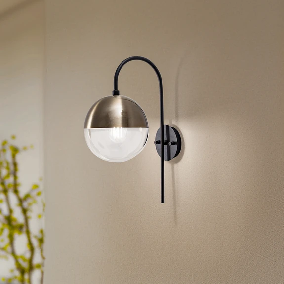 Zidna svjetiljka Bastos 3055, crna/staro zlato/prozirno